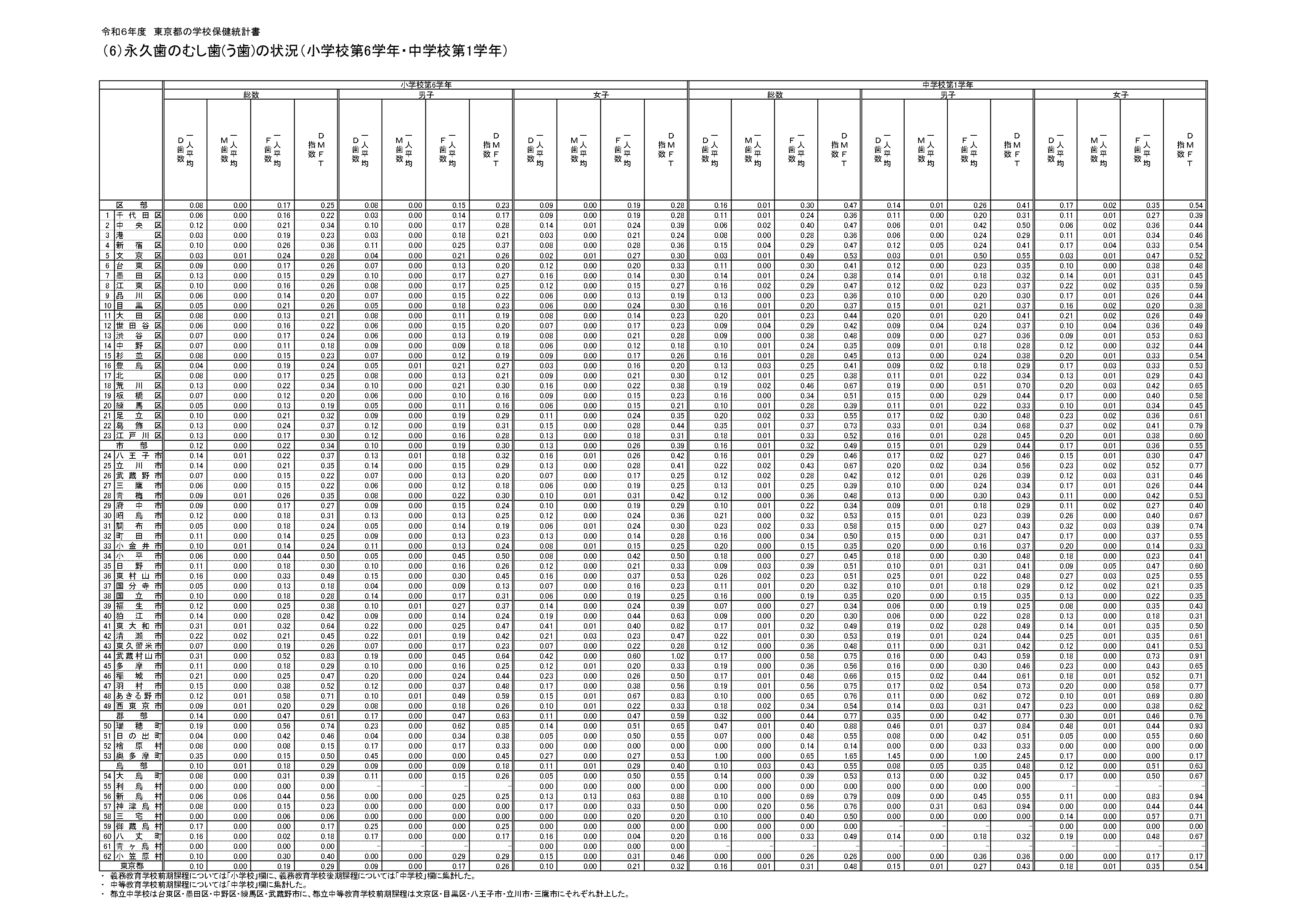 印刷用ダウンロード: 令和6年度東京都の学校保健統計書|永久歯のむし歯(う歯)の状況(小学校第6学年・中学校第1学年)