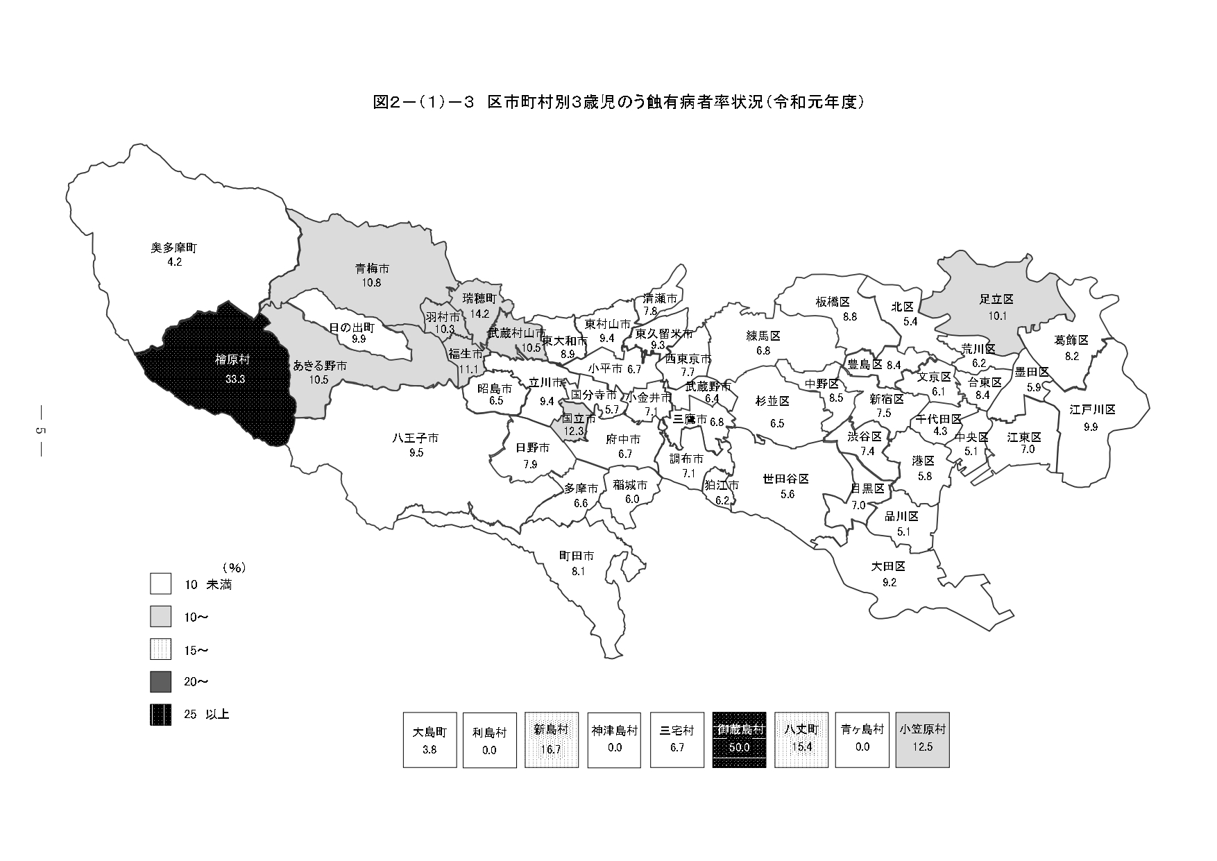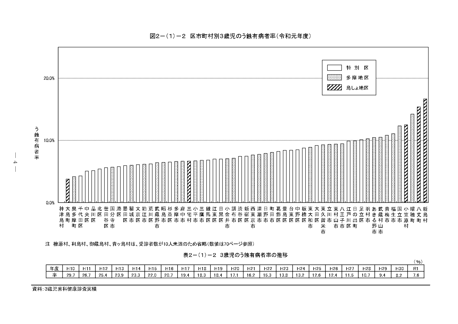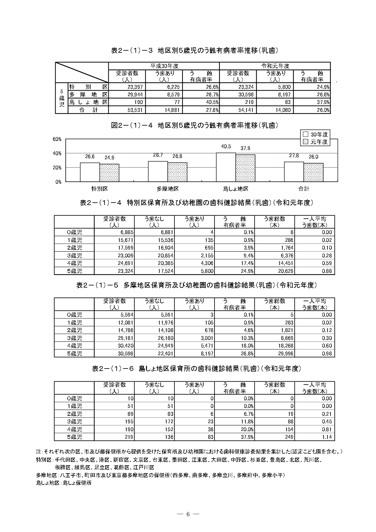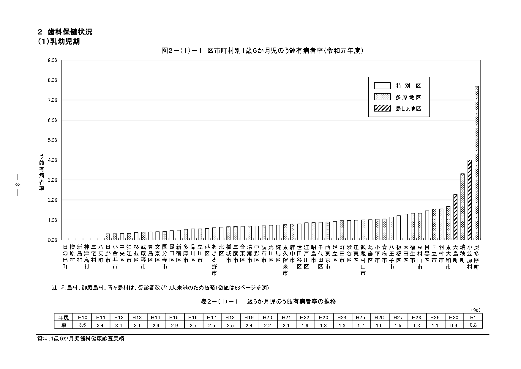 『東京の歯科保健—東京都歯科保健医療関係資料集—令和2年10月』の 2 歯科保健状況 2-(1) 乳幼児期 部分の抜粋