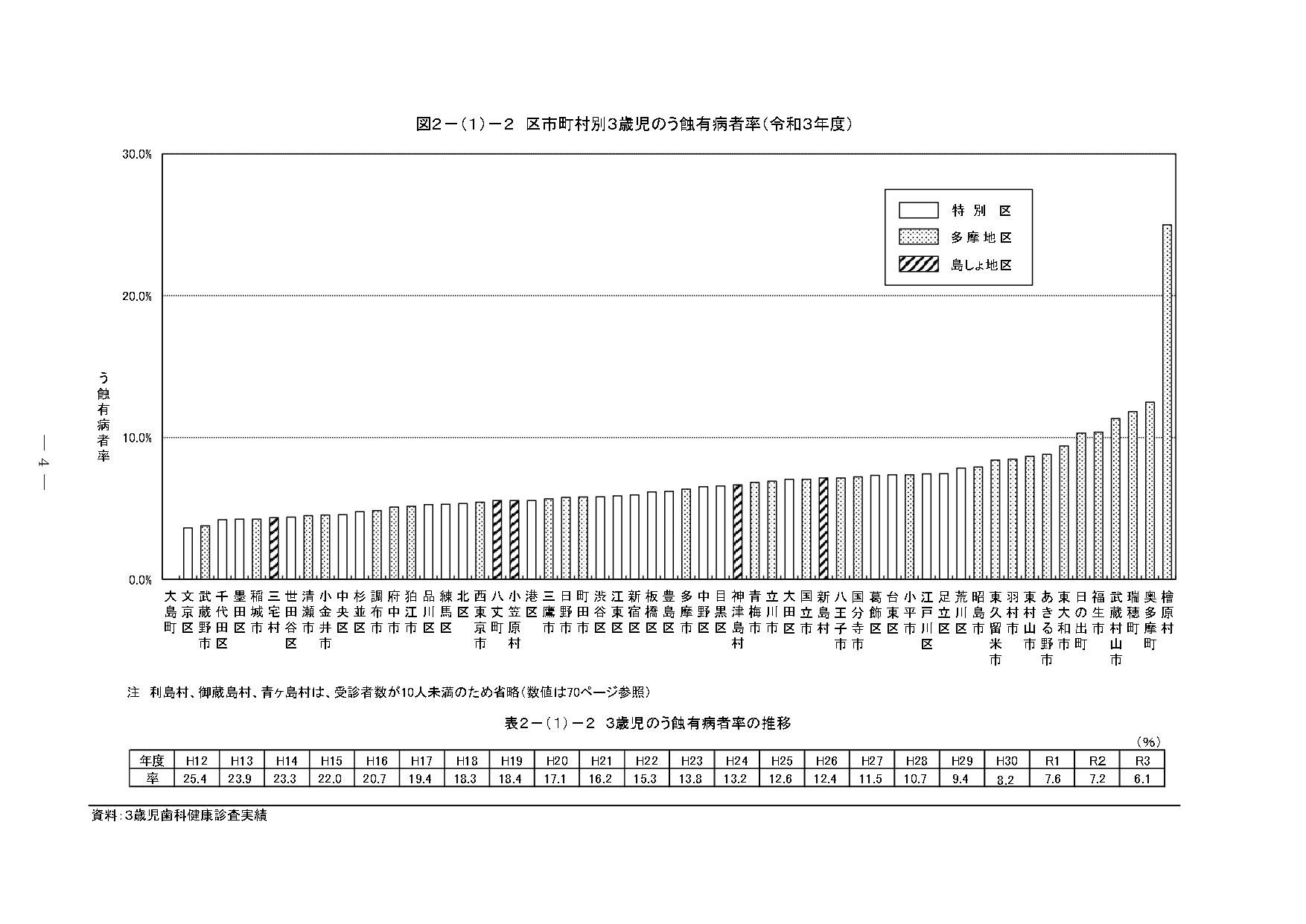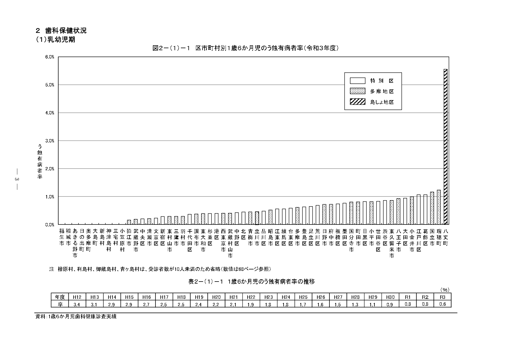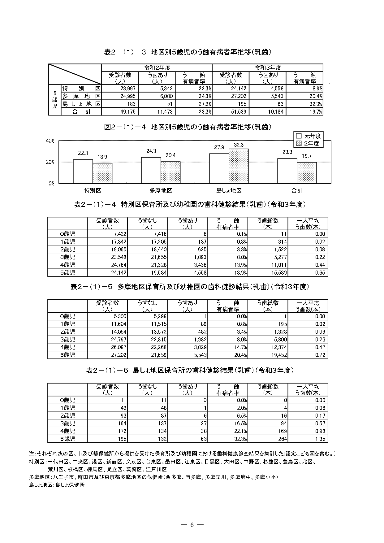 『東京の歯科保健—東京都歯科保健医療関係資料集—令和4年10月』の 2 歯科保健状況 2-(1) 乳幼児期 部分の抜粋