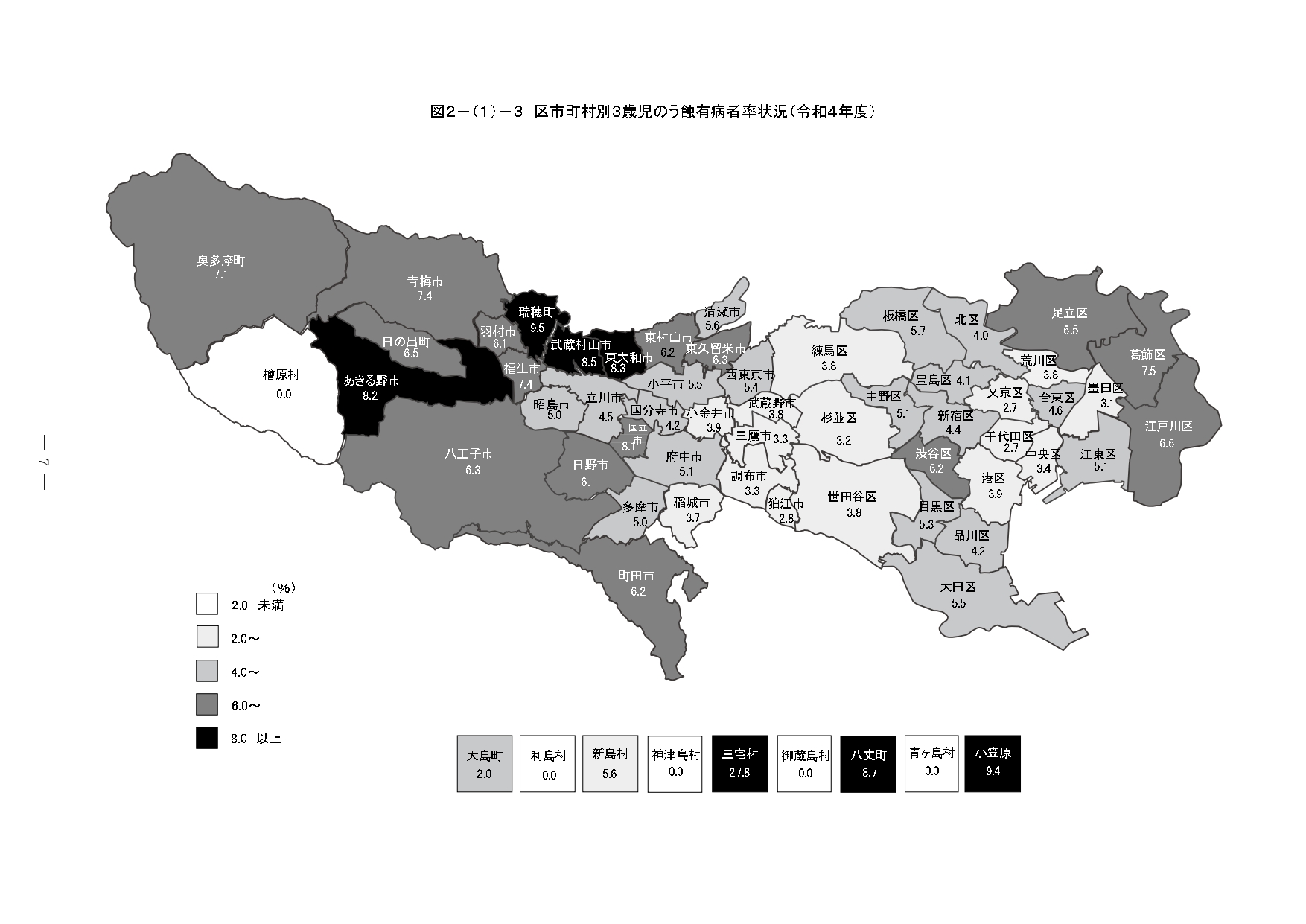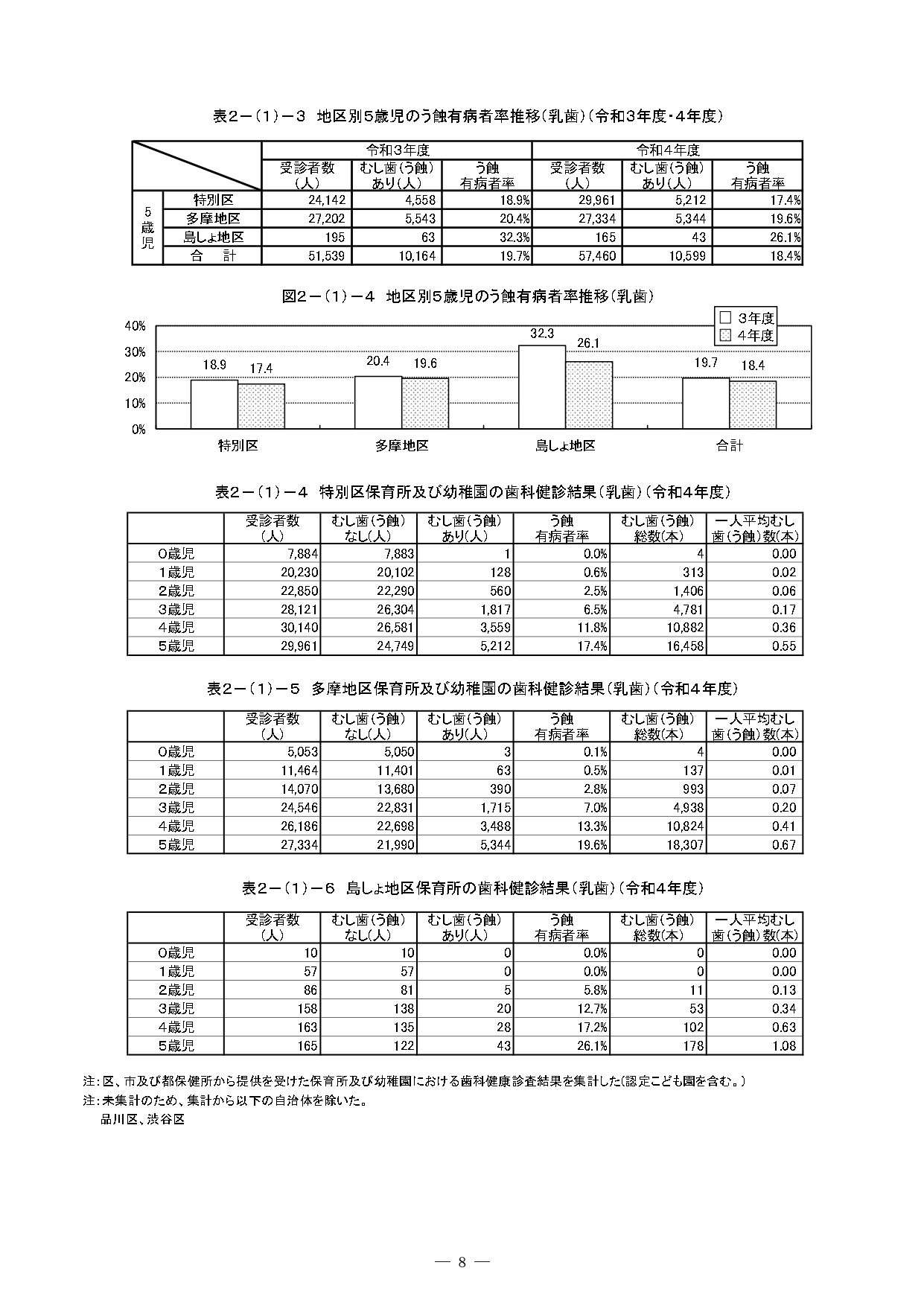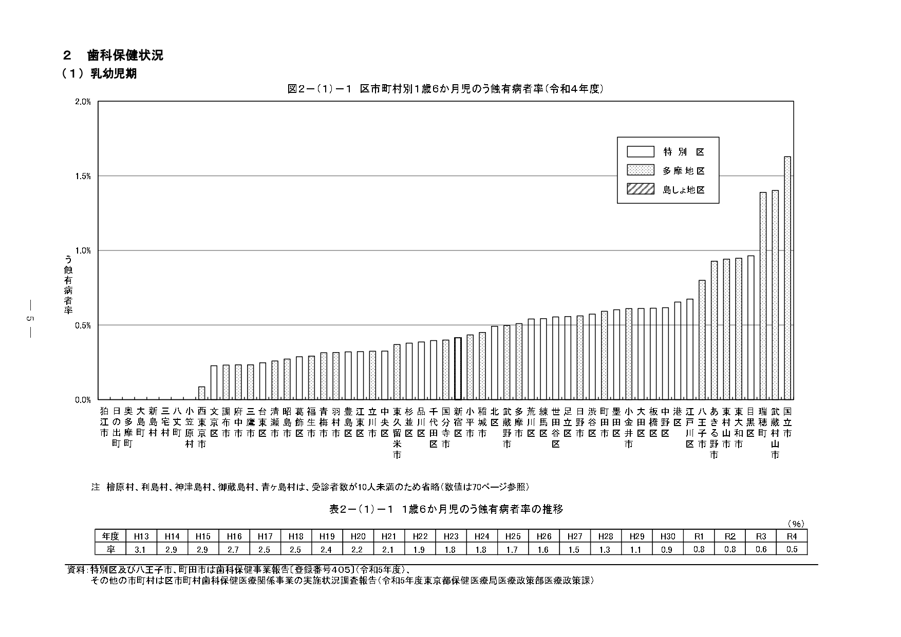 『東京の歯科保健—東京都歯科保健医療関係資料集—令和6年10月』の 2 歯科保健状況 2-(1) 乳幼児期 部分の抜粋