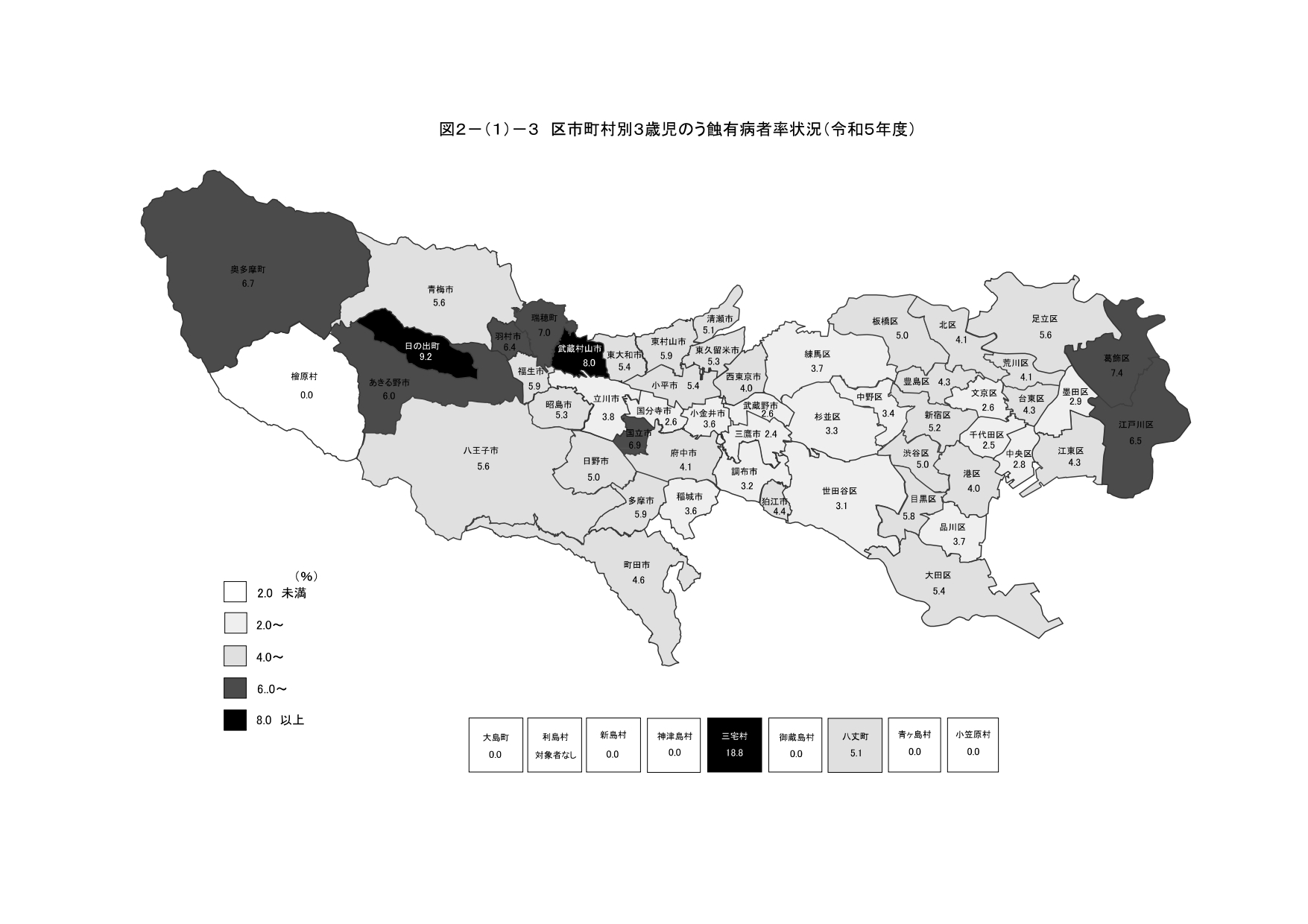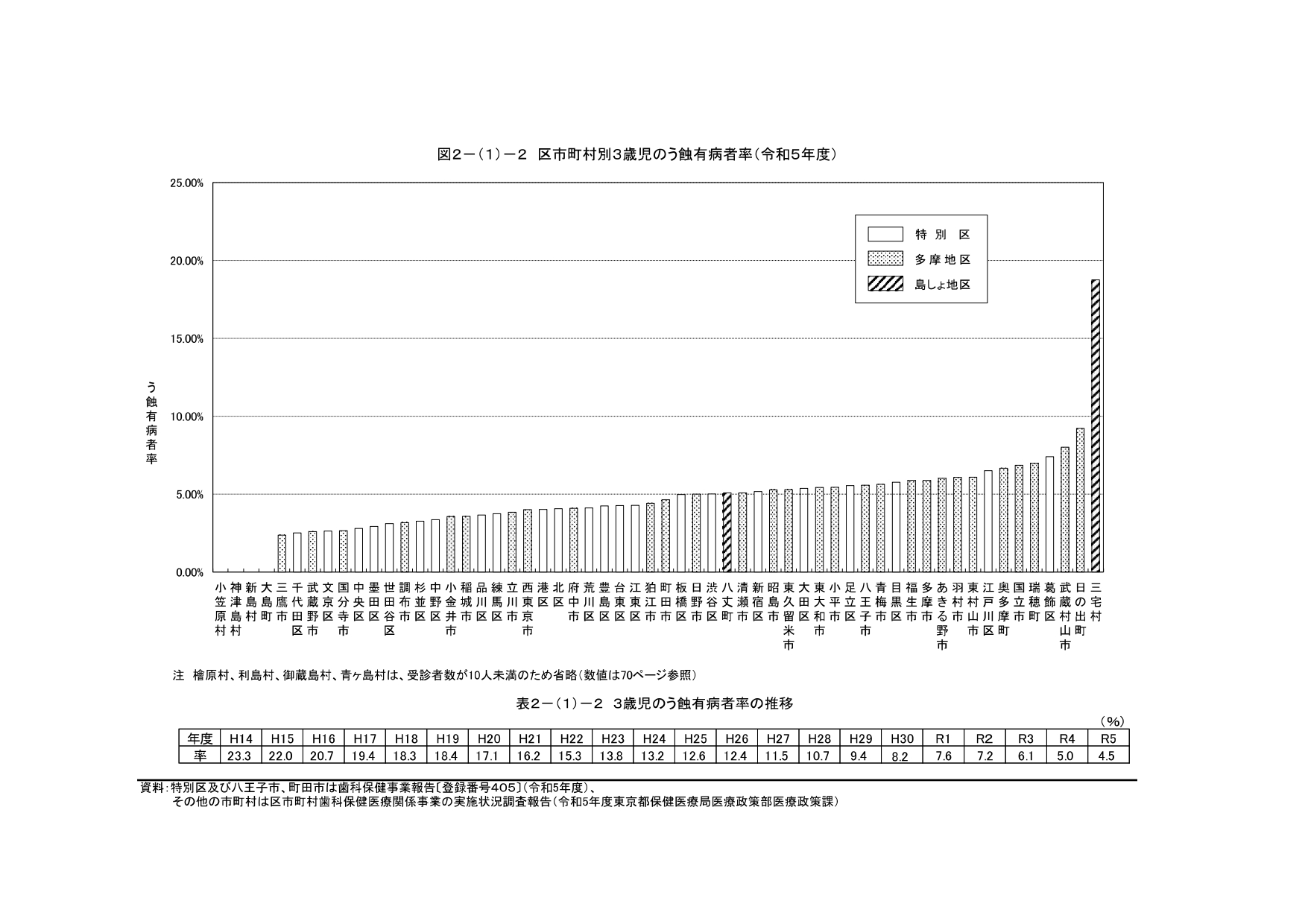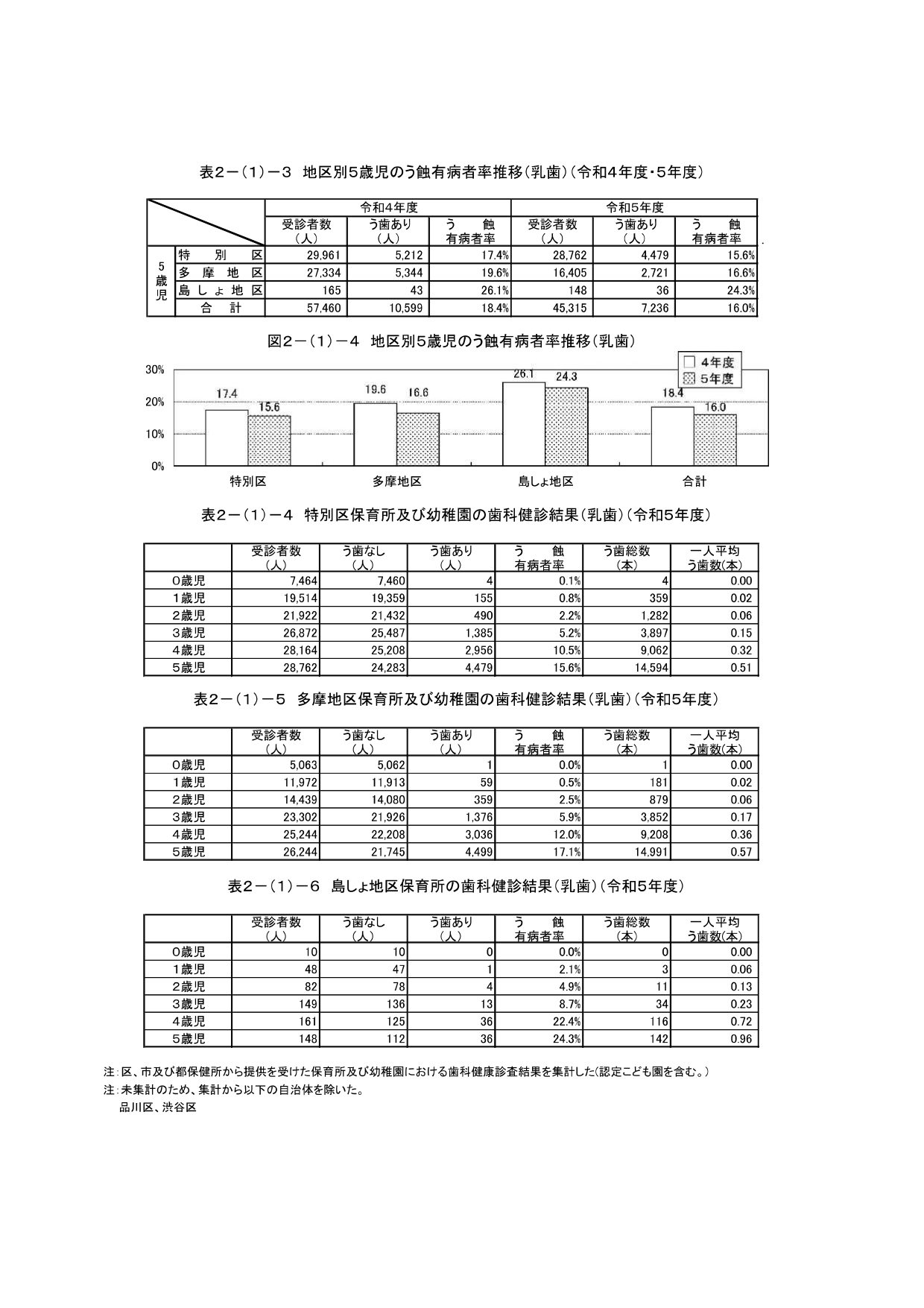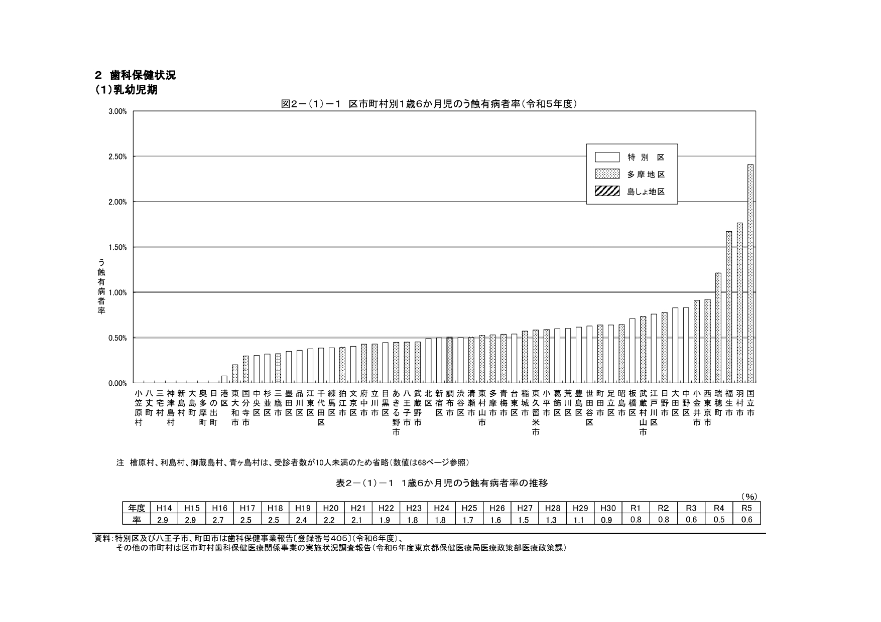 印刷用ダウンロード:『東京の歯科保健—東京都歯科保健医療関係資料集—令和7年10月』の 2 歯科保健状況 2-(1) 乳幼児期 部分の抜粋