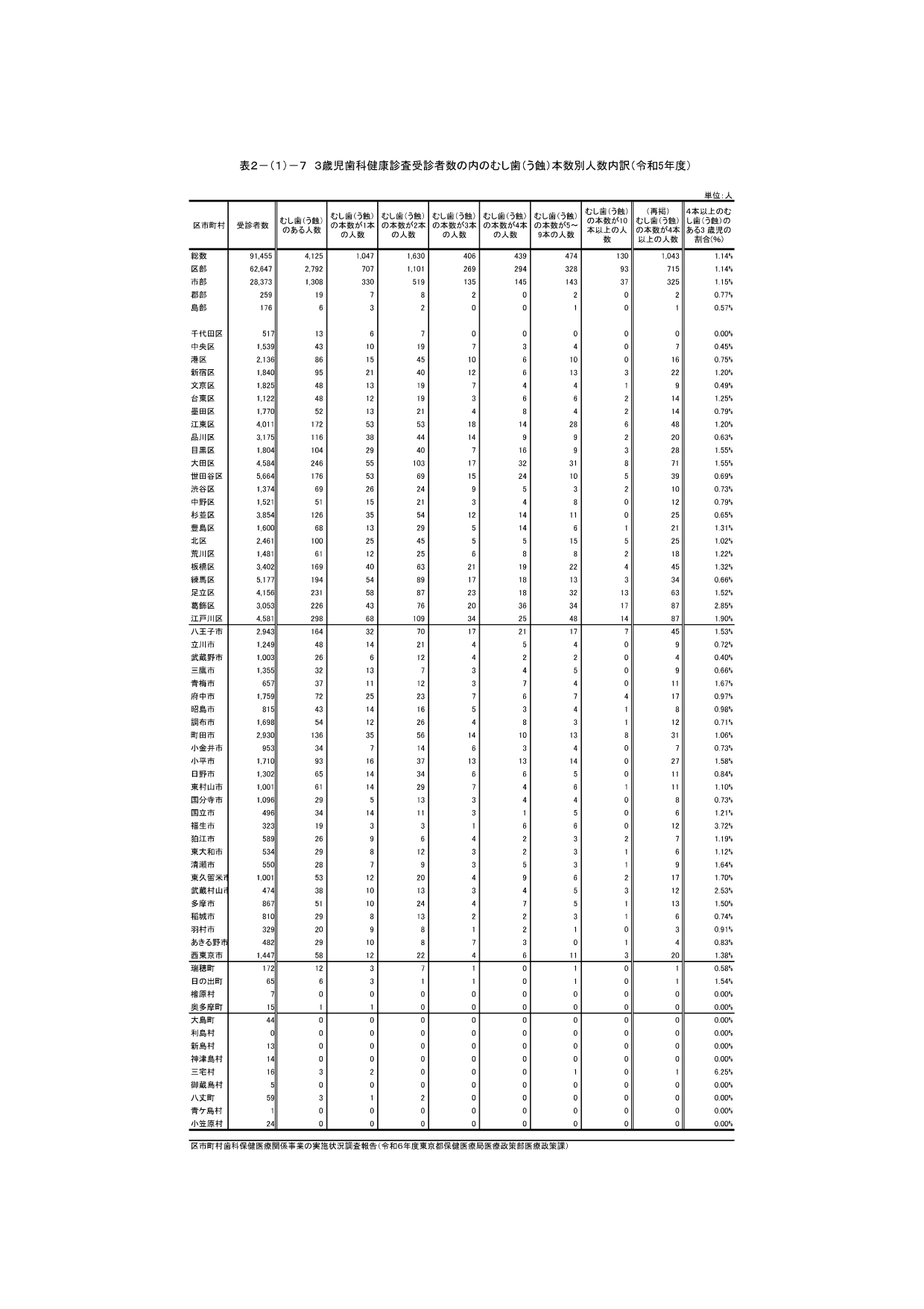 『東京の歯科保健-東京都歯科保健医療関係資料集』各年度の 2 歯科保健状況 2-(1) 乳幼児期を収録しています。
