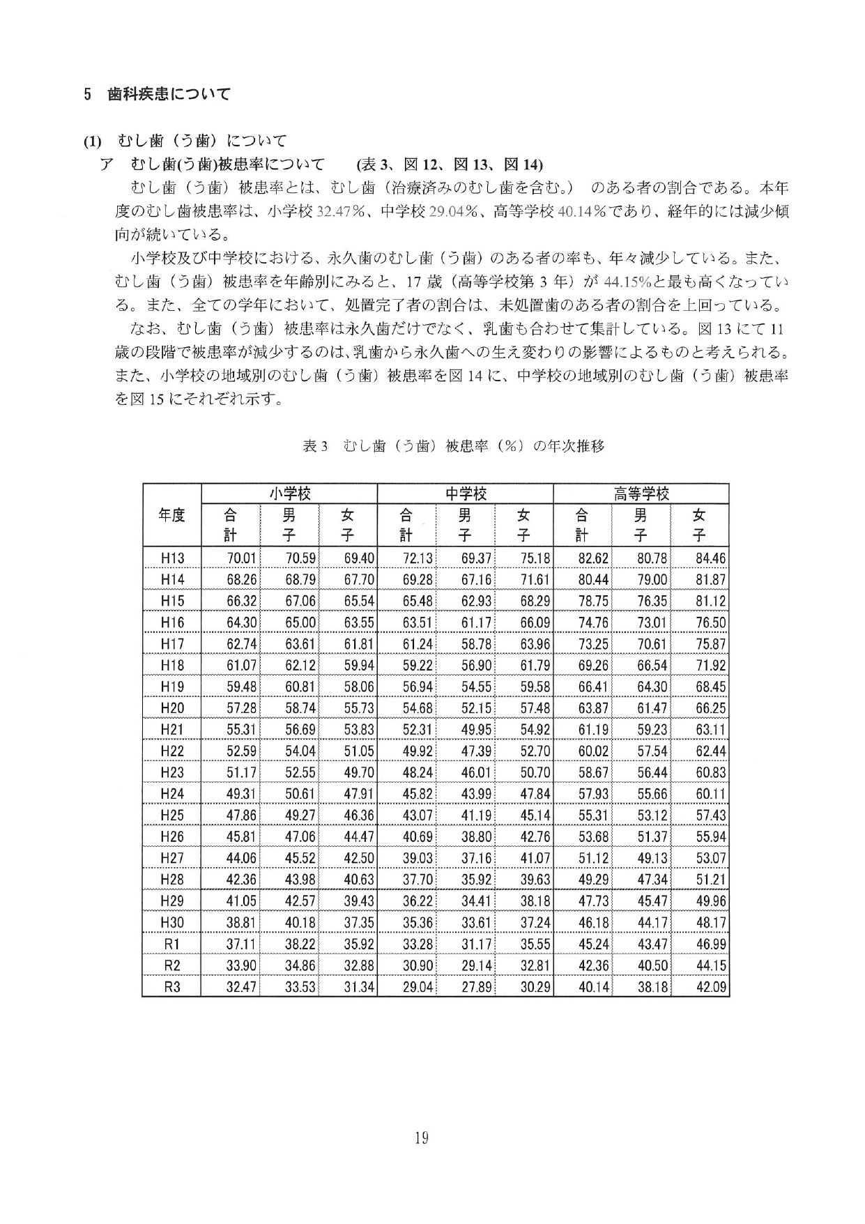 令和3年度 東京都の学校保健統計書|歯科疾患|(抜粋)
