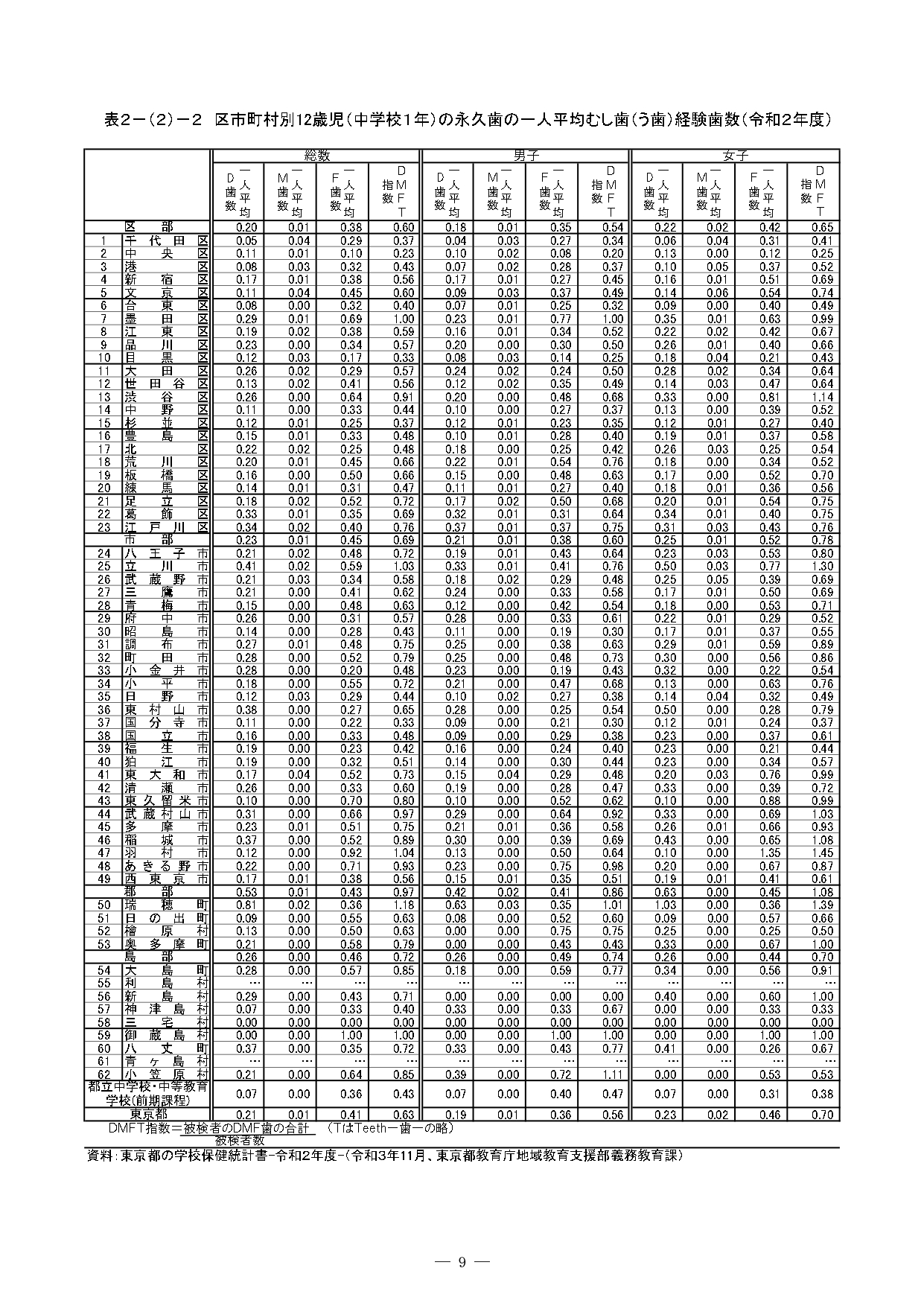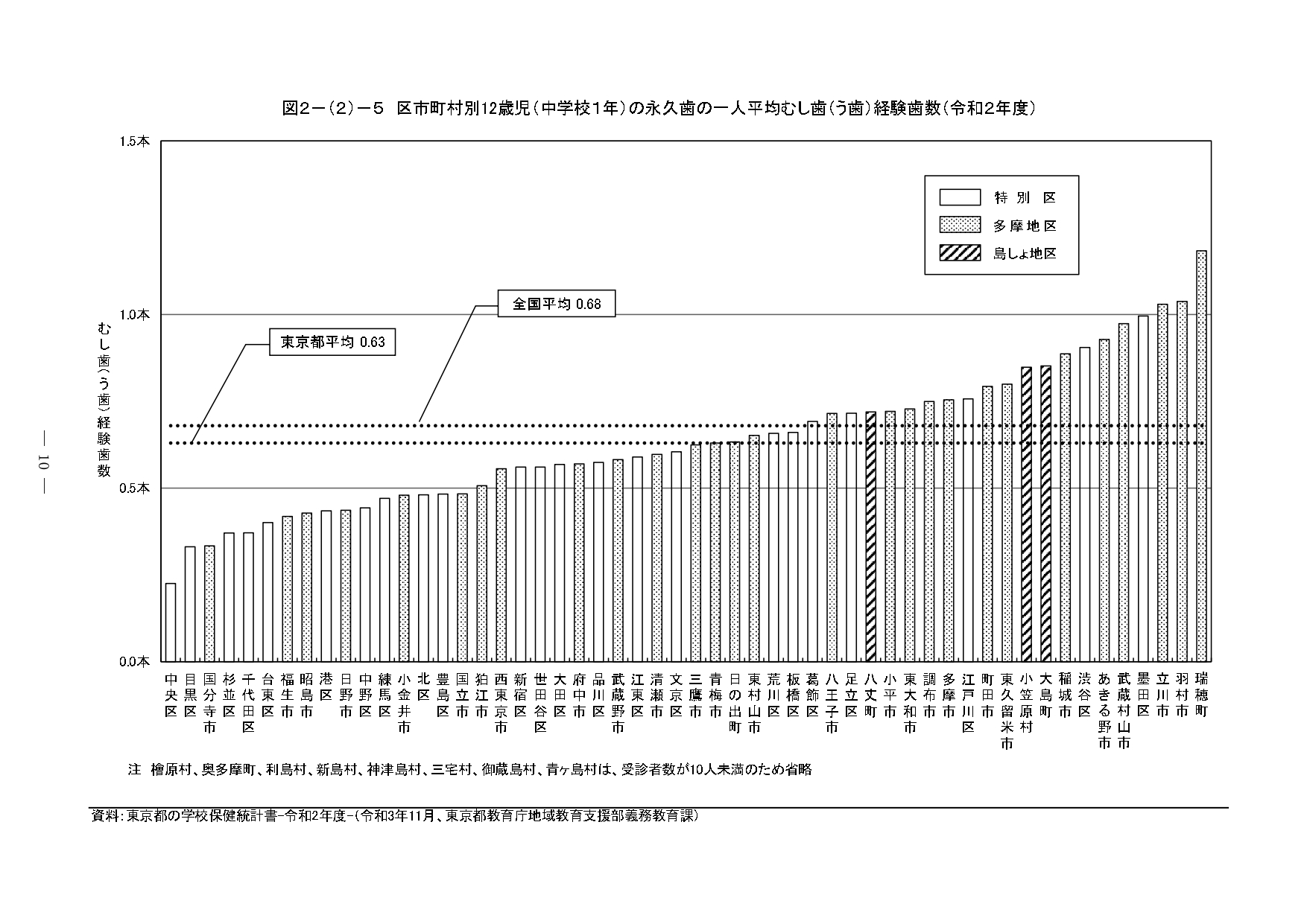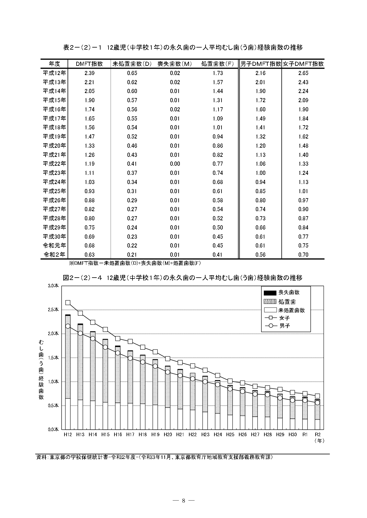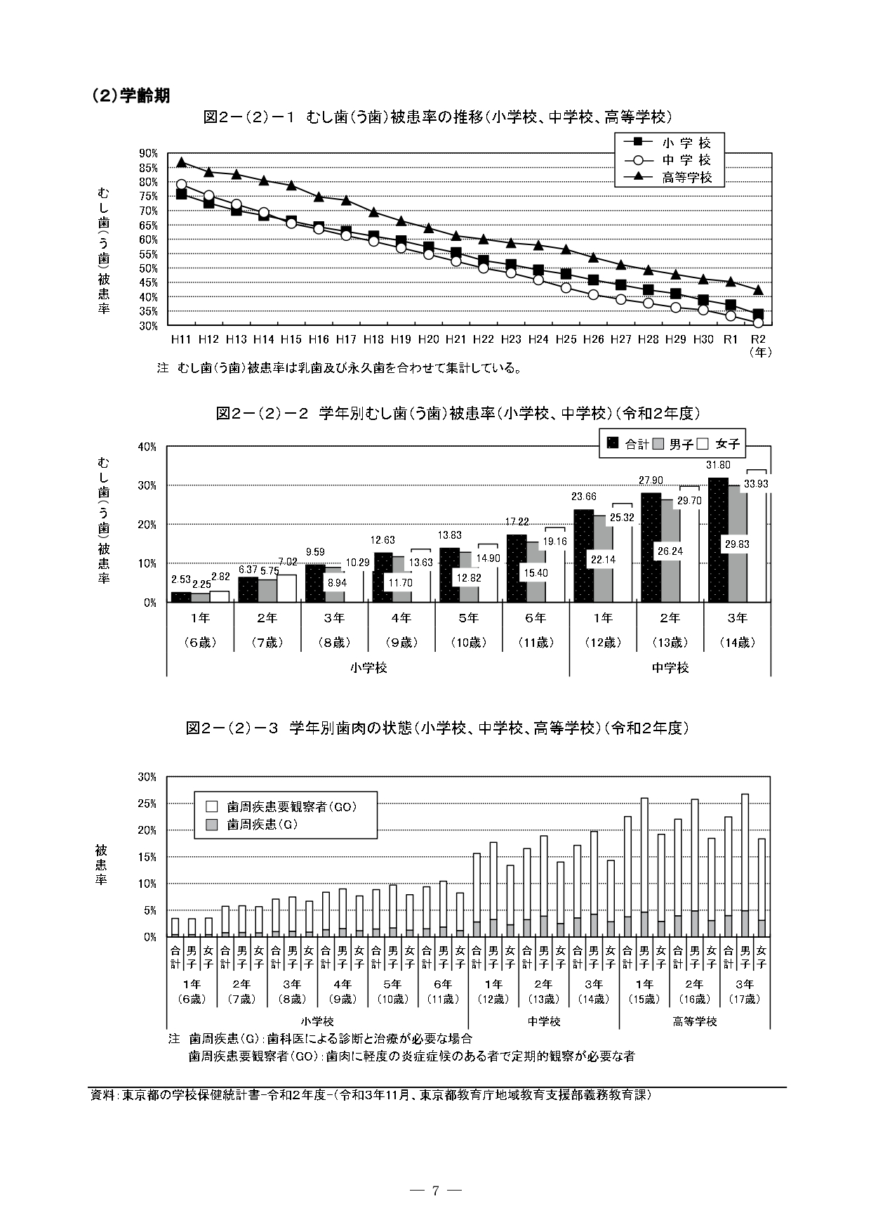 印刷用ダウンロード:『東京の歯科保健—東京都歯科保健医療関係資料集—令和3年10月』の 2 歯科保健状況 2-(2) 学齢期 部分の抜粋
